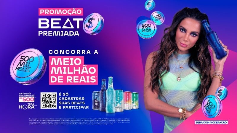 Além disso, comprando sua Beats preferida pelo app Zé Delivery, você tem o dobro de chances para concorrer ao prêmio final de R$500 mil e ainda ter uma experiência única com a cantora Anitta durante o carnaval 2023. Para isso, é necessário cadastrar o pedido do Zé Delivery no site da promoção e pronto.