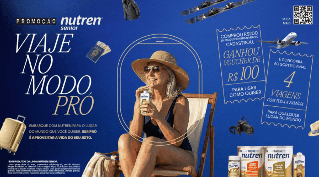 A Nutren Senior, marca de suplementação da Nestlé voltada ao público 50+, acaba de anunciar o lançamento da promoção “Viaje no Modo Pró”. A iniciativa, que ocorre entre os dias 2 de março e 30 de abril de 2026, marca a primeira grande ação promocional exclusiva da linha, combinando premiações instantâneas via crédito digital com o sorteio de viagens personalizadas. O movimento reforça a estratégia da marca em promover a autonomia e a longevidade através de uma nutrição adequada.